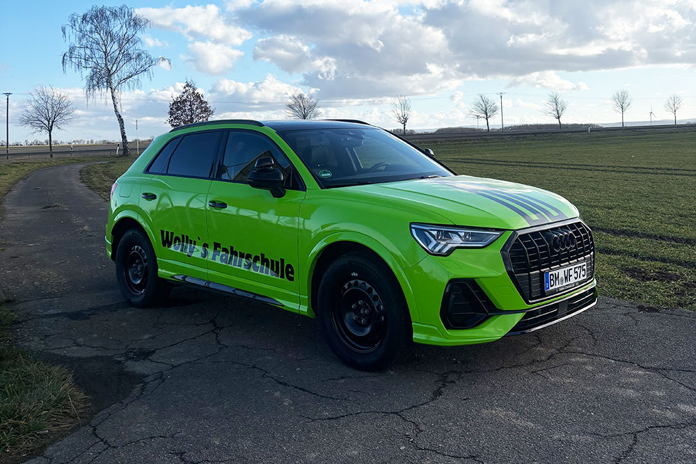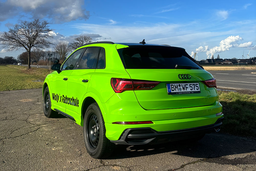 Unsere Fahrschüler sitzen nicht in irgendeinem grauen Zweckauto, sondern in einem modernen Audi Q3 Sportsback mit sportlichem Look und hochwertigem Innenraum. Bequeme Sportsitze, ein aufgeräumtes Cockpit und neueste Assistenzsysteme sorgen dafür, dass du dich vom ersten Moment an sicher, entspannt und ein bisschen stolz fühlst.
